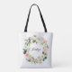 Rosas de Pastel de Aquarelas Floral Wreath Bridesmaid Tote Bag | Saco de tota personalizável com ilustrações aquosas das flores pastel e da coroa verde. Esta bolsa floral será perfeita como presente personalizado.
