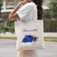 Pamper suas damas de honra com um presente especial neste saco azul real de tote floral. Um buquê de rosas azuis elegantes é acentuado com ouro, e o texto do roteiro azul complementar pode ser facilmente alterado.
