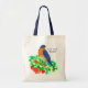 Um saco de tota decorado com um pássaro azul em um galho florescente com rosas laranja vermelhos brilhantes ilustrados com tinta e aquarela. Inspirado pelo pássaro e flor estadual de Nova York. Você pode editar ou remover o texto para ajustado das suas necessidades.