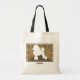 Três de madeira, tons da terra compo esta sacola funky da caniche. A silhueta da raça do cão é no centro, com ângulos radicais no fundo. Está abaixo o nome da raça. Presentes legal da caniche para amantes do cão.