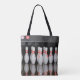 Um saco de tote com uma foto de pinos de boliche. Se você acredita que o custo e o transporte são demais para pagar. Junte-se à Zazzle Black no check out para obter transporte livre ilimitado, grandes descontos e exclusividade de excelente o ano todo. Um membro padrão é $9,99 por ano.