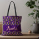 Tote Bag (Tote Bag) com padrão púrpura floral de aquarelas.
