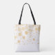 Esta bolsa festiva de tote de inverno apresenta um adorável pato branco adorável adorado com uma coroa sagrada ao redor do seu pescoço e flocos de neve dourados no fundo. O verso tem flocos de neve dourados. Este bolsa é personalizável, não se esqueça de adicionar o seu nome!