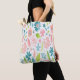 Este design apresenta um fundo floral cor-de-rosa brilhante e cor-de-rosa brilhante em toda esta mala de impressão tote.