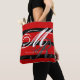 Um saco de na moda com o seu nome e as suas iniciais num plano de fundo de grandes bandas vermelhas