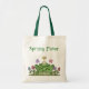 Saco de tote de canvas de sapo de cartoon bonito, com texto verde lendo Febre de Primavera. Primavera está no ar com este adorável gráfico country de um grande sapo cercado por borboletas e flores. Personalize o texto para ler o que quiser. Excelente reutilizável para todas as suas tarefas diárias.