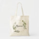 Esta mala de tote verde-marrom, dama de honra geométrica, é o presente perfeito para apresentar suas madrinhas e madrinhas de casamento para um casamento simples. A design apresenta lindas folhas verdes pintadas à mão, enfeitando um quadro geométrico dourado.