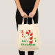Um design festivo a encher-se com os deleites e a dar como um presente ou a usar-se como um bolsa reusável quando compras na mercearia. Personalize com nomes ou cumprimentos se desejado, antes da compra.