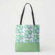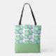 Esta bolsa de tote é mostrada com um design impressão de flores tropicais bonitinho em uma cor verde de fundo branca com uma tira de sotaque verde macio na parte inferior. Tamanho médio mostrado. Tem pulseiras negras. Personalize este item ou comprar como está.
