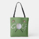 A sacola telhada do golfe tem os clubes de golfe cruzados criss e a palavra "golfe" com uma bola de golfe no centro no lugar do "O" em uma camisa azul. O texto e/ou as imagens podem ser adicionados e a cor do bagt pode ser personalizada.