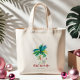 Estes bonitos sacos de tote de Natal tropical apresentam uma palmeira exótica inspirada na ilha e Papais noeis de férias bonitos. As palavras "Feliz Beach-mas" são definidas em letra de mão. Use os campos modelo para adicionar sua saudação personalizada. Uma escolha encantadora para comprar Natal e presentes para a família nesta temporada de férias. Sacos de tote pequenos e a granel disponíveis. Se você está procurando por mais designs bonitinhos visite www.zazzle.com/dotellabelle Arte e design de aquarela únicas por Victoria Grigaliunas do Do Tell A Belle.