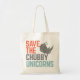 SALVE OS UNICORNS DE CHUBBY, saco de tote. Tipografia colorida e fria com rinocerontes.