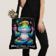 Inalar a Paz, Exalar o Salto Engraçado, sapo engraçado e fofo está praticando meditação e refletindo sobre a importância de apenas respirar. Colorido em verde e rosa, em um saco de tote.
