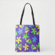 Bolhas florais coloridas num fundo roxo