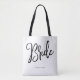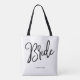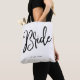 Esta bolsa de na moda apresenta um moderno roteiro manuscrito preto e diz "noiva", com um ponto para adicionar seu nome.