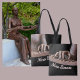 Bolsa Tote Sculpted Hands at Piano Keyboard Bronze & Black