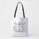 Um saco de tote com um design de joabt. A design mostra conchas organizadas em um padrão.