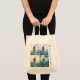 Carregar para as suas mercearias, presentes, ou a sua pilha de livros nesta série de arte caprichosa pintando para a bolsa que contém Rapunzel na sua torre de manhã à noite em quatro painéis. A primeira imagem mostra a torre de Rapunzel no nascer do sol com uma sacada vazia, a segunda é a manhã com Rapunzel vestida de vermelho na sacada, a terceira tarde ensolarada com ela desapontando-a e um cavalo no horizonte, e a quarta à noite com o seu salvador subindo o cabelo para o lado da torre à luz da lua. Na parte inferior está o título, Rapunzel de Traci Van Wagoner em um estilo divertido.