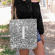 Bolsa Tote Silver Faux Glitter Bokeh Sparkles Monograma