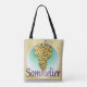 A ilustração original e design por ZoeSPEAK neste Tote Bag de corpo cruzado apresenta um ouro de uvas. Um pino de ouro como este é vestido por um sommelier. Um sommelier, ou adestrador de vinho, é um profissional de vinho experiente e experiente que se especializa em todos os aspectos do serviço de vinho, bem como no emparelhamento de vinho e comidas. Nessa ilustração, as uvas iluminam as letras roxas profundas "sommelier", como o sol dos vinhedos. Uma forma verde redonda ecoa a garrafa de vinho e os verdes e as profundezas vermelhos da vinha. Um fundo texturizado de cortiça com uma borda áspera envolve a cena.