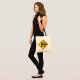 Este design é um sinal de passagem de linha. Este sinal tem uma travessia ferroviária preta contra um fundo amarelo. Este sinal de passagem de via férrea parece ser excelente neste Saco de Tote