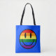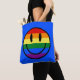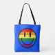 Este trabalho de arte colorido apresenta um smiley face arco-íris.