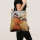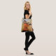 Organ grinding monkey wearing an orange shirt, brown skirt and a big smile.