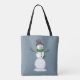 Um boneco de neve, mas arrepiante, veste um chapéu desossado vermelho e um cachecol verde nesta ilustração de vinho feita por Richard H. Fay.
