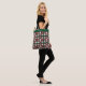 Neves bonitos em chapéus e lenços, entremeados com flores brancas e galhos em fundo verde, cria uma colagem divertida que é perfeita nesta bolsa de tote de Natal. Personalize com seu nome em uma banda verde no topo.