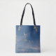 A fotografia original de ZoeSPEAK neste Tote Bag captura um bando de ternos que decolam da praia, indo para o oceano. Os pássaros brancos, à luz do sol da tarde, se destacam contra o céu azul profundo. As árvores têm penas pretas nas cabeças e bordas das asas, e caudas forjadas como caudas de andorinhas.