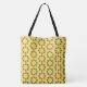 Senhoras Grande Shoulder Bag em um padrão de círculos, cada círculo composto por pontos vermelhos e verdes alternados, em uma cor de base amarela.
