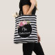 Bolsa Tote Sra. com Black & White Stripes e Flores Personaliz