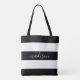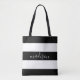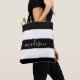 Black and White Stripes with Name Typoographic Tote Bag (Bandeja de Tota de Tipografia).