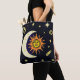 Essa bolsa útil mostra o sol e a lua, estrelas amarelas, cometas, asteroides e galáxias, sobre fundo azul-da-noite. Perfeito para viajar de compro e um acessório ou presente colorido excelente.