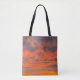 Isto é criado de uma fotografia tirada de um pôr do sol. Para mim, as cores laranja vibrantes combinadas com as nuvens coloridas de cinzas roxas pareciam um fogo no céu.