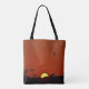 Esta bolsa de tote apresenta um belo pôr do sol laranja sobre um pântano em Westbrook, CT. Acontece que uma gaivota por aqui no momento.