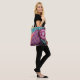 Matriz de tecidos bordados de impressão e embelezados com um rosa. Muitas cores em laranja, lacre, pinças, roxo e ouro. Impressão boêmico rico.