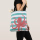 Esta mochila de tote estilo praia moderna tem um polvo vermelho sobre um fundo listrado branco e lacrimogêneo.