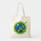 Um sapo verde sobre o globo terrestre como um design ambiental. Este design parece realmente eficaz nesta Tote Bag