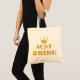 O texto dourado do brilho e uma coroa em um fundo feito sob encomenda projetam para uma festa de casamento.