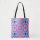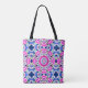 Saco de tote em um padrão de gravata digital mandala em tons de azul denim e rosa cor-de-rosa