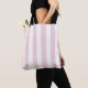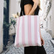 Saco de tote vertical listrado, rosa-bebê e branco.