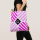 Atualize seu guarda-roupa de primavera e verão com este saco de tote personalizado que apresenta faixas diagonais em negrito em dois tons de rosa mais um monograma personalizável. Modifique o inicial para criar um presente de um tipo que seja perfeito para adolescentes e mulheres de todas as idades. Quer seja usado para um dia de folga com amigos ou um fim de semana de distância, este bolsa versátil irá adicionar um toque de cor a qualquer primavera ou conjunto de verão.