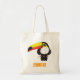 É a ilustração de um lindo e adorável tucano empoleirado em um galho, com letras laranja grandes soletrando seu nome (ou qualquer outro texto - você pode personalizar). Se o tucano é seu animal, ou você só adora ter essa criatura kawaii por perto, essa bolsa de tote é para você!