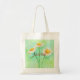 Três belas margaridas brancas são alegres nesta bolsa de tote de algodão puro. Linda cor de fundo dá vida às margaridas por um tema bolsa maravilhoso. ideia de presente de excelente! Arte original de Audrey Ascenzo.