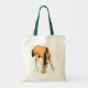 Um saco de tote de orçamento em cor 'natural' com alças verdes caçadoras e um design de potro na frente, de uma pintura de aquarela de Judy Adamson.