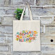 Esta bolsa de tote "Animais são nossos amigos" apresenta uma citação com flores.