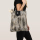 Uma escolha de na moda e tendência, esta design de saco de tote tem uma impressão animal exótica em padrão de snakeskin em tons neutros de castanho, bege, cinzas, carvão esbranquiçado e profundo. Um quadro de tabulação anotado correspondente no centro superior do design tem um modelo de texto para personalizar com o seu monograma inicial desejado. Esses bolsas fazem presentes maravilhosos e a personalização os torna especiais.