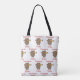 Are you looking for a gift for the trumpet player in your life? This tote bag features a pattern of a brown cat playing the trumpet and the words trumpet tribe in pink letters.
