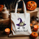Bolsa Tote Truque ou tratamento de bruxas roxas bonitas